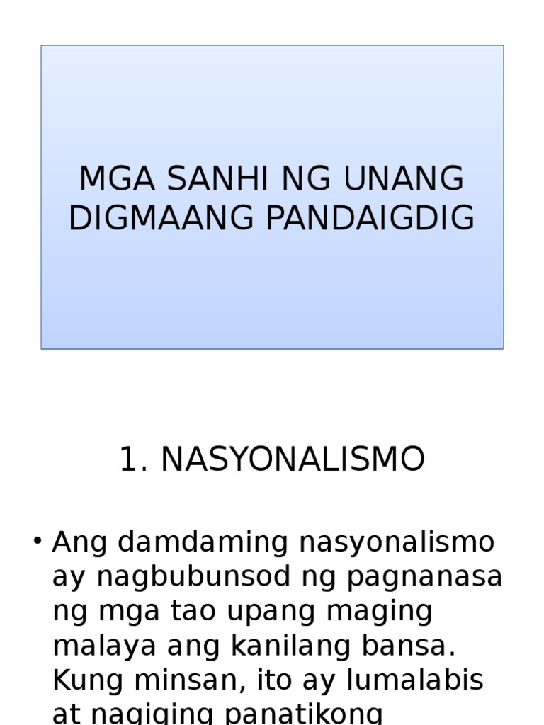 Mga Sanhi Ng Unang Digmaang Pandaigdig Pdf