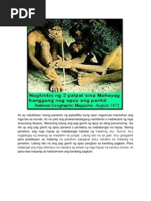 Ito ang ginagamit ng mga sinaunag tao na gamut sa may sakit8. At hamon sa kapaligiran noong panahong niyolitiko o panahon ng bagong bato. Sa kasamaang palad ay napatid ang paa niya sa isang nakatumbang puno ng mangga at nahulog siya sa isang malalim na hukay.