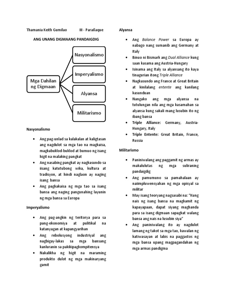 Mga Aralin at Sakop ng Modyul Aralin 1 Unang Digmaang Pandaigdig Aralin 2 Ikalawang Digmaang Pandaigdig Aralin 3 Mga Ideolohiya Cold War at Neokolonyalismo Aralin 4 Ang United Nations at Iba Pang Pandaigdigang Organisasyon Pangkat at Alyansa. THIS SET IS OFTEN IN FOLDERS WITH. Ang Unang Digmaang Pandaigdig o World War I ay kilala din sa.